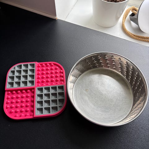 Skålen har silikonebelagt bund, som modvirker glid på glatte overflader.
