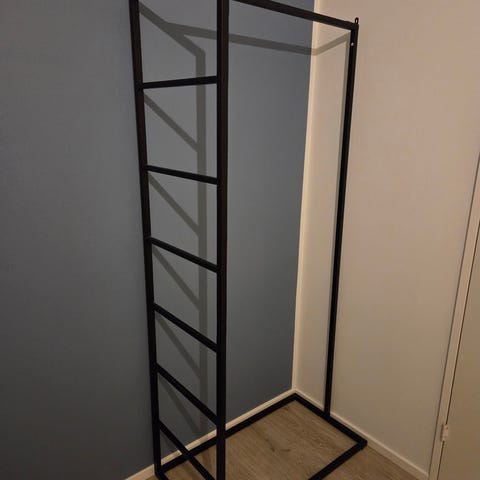 Tøj, stativ, skohylde, hylde, hylder, garderobe, gardarobe, metal, sort, træ