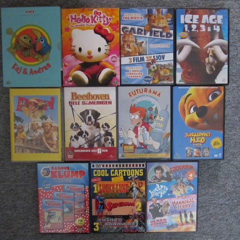 Børne Bokse med flere film i hver DVD, originale med dk tale eller undertekster.