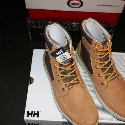 Helly Hansen The Forester støvler i størrelse 43. Modellen er en ankelhøj støvle i sort (Jet Black/Dark Shadow) med snørelukning. Overdelen fremstår i glat materiale med polstret kant om anklen og HH-logo på siden. Ydersålen er mønstret for bedre greb. Velegnet som hverdags- eller fritidsstøvle i køligere vejrforhold.