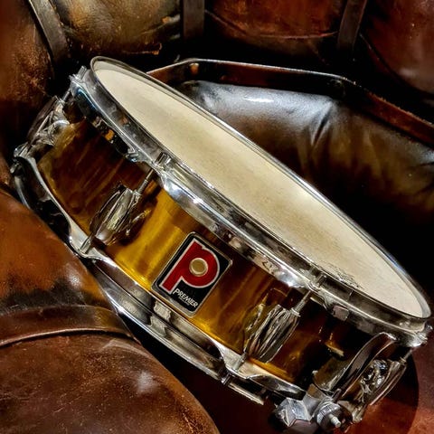 Lilletromme, Premier Piccolo, Original 1990'er Engelsk Premier kvalitets lilletromme i messing 4x14