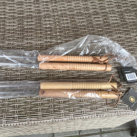 Kan skilles på midten, så den fylder mindre og kan haves med på tur.