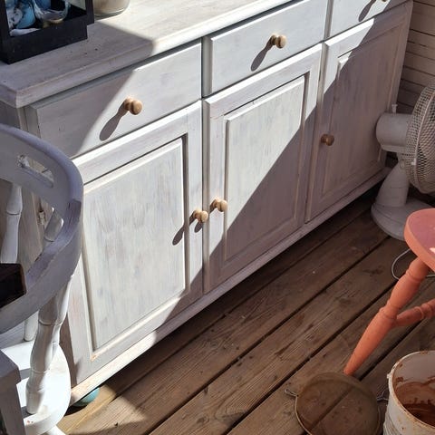 To kommoder af fyrretræ brugt til værktøj. Skufferne kører ikke så godt.