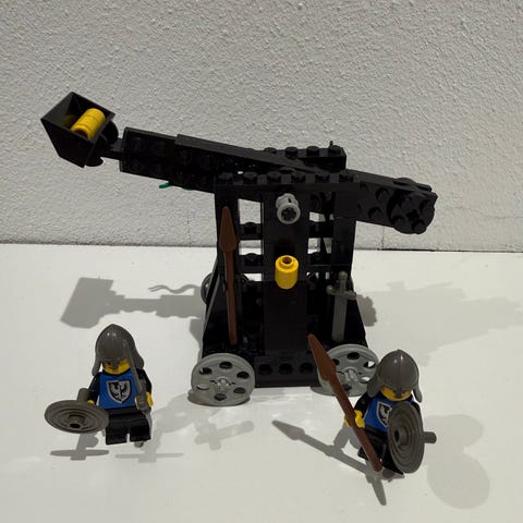 Lego Castle ridderborg med tilhørende minifigurer og tilbehør. Sættet består af en borg med tårne, port og mure samt forskellige ridderfigurer og våben. Velegnet til leg med middelalder- og riddertema og kan kombineres med andre Lego-sæt i samme serie.