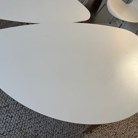 Flot sofabord i krydsfiner. Enkelte steder med slid og lidt tusch. Har lige fået olie og står i god stand.
