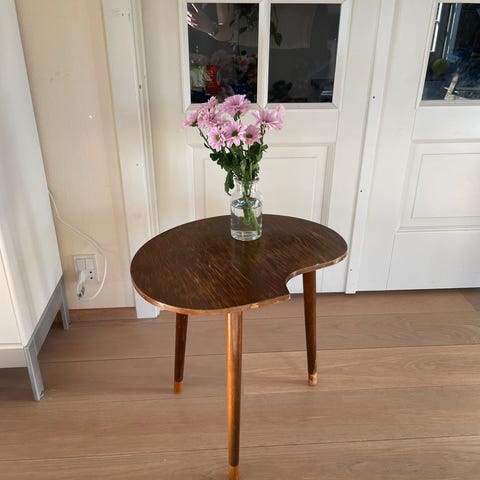 Bordet er bønneformet med tre ben. Da bordet kun har tre ben, står det selvsagt ikke ligeså stabilt, som hvis det havde haft fire ben.