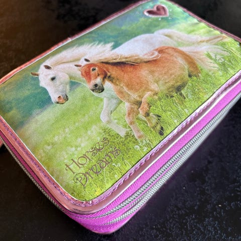 Penalhus med tegneredskaber hestemotiv