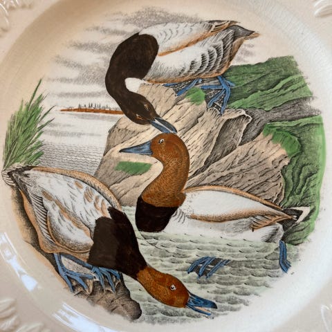Dette er en antik tallerken fra det franske mærke Sarreguemines i det populære "Erik"-mønster.