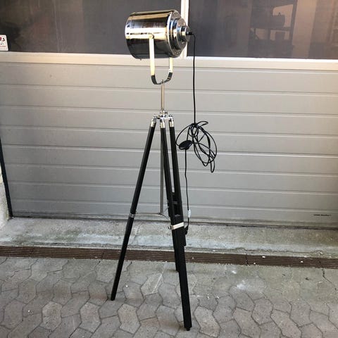 Flot og smart gulvlampe i instruktør stil med justerbare ben og lampehoved. Kan justeres op til 180 cm.