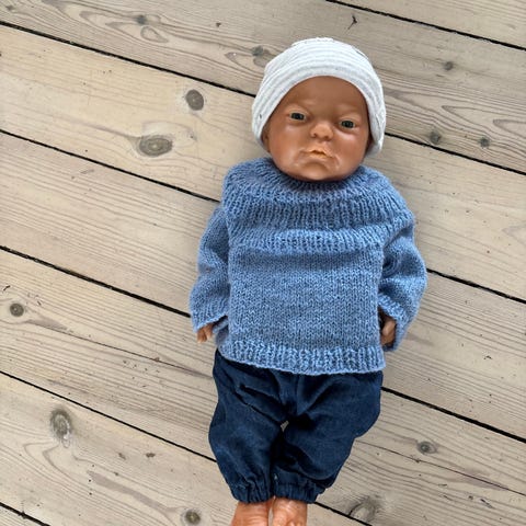 Drenge dukke med flere sæt tøj. Dukken er en klassisk baby dukke i plast med bevægelige arme og ben. Medfølgende tøj omfatter blandt andet heldragt, bukser, bluse, body, hættetrøje og huer i forskellige farver og mønstre. Egnet til leg og påklædning for børn, der kan lide rolleleg med baby dukker.