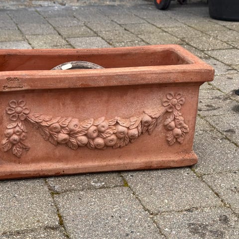 Sælger 2 smukke, klassiske italienske terracottakummer med dekorativt relief.