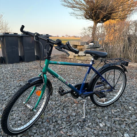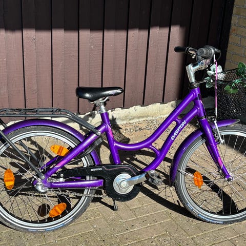 Everton børnecykel med 20" hjul i lilla farve. Cyklen har bagagebærer, skærme for og bag, støtteben samt reflekser på hjul og pedaler. Velegnet som hverdagscykel til børn i den størrelse, der passer til 20" hjul.