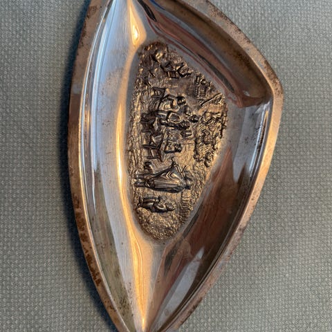 Ca. 1920'erne Dansk sølvplet tre dele, spejlet er 14 cm. x 26 cm. Alle dele stemplet med Hans Jensen mærke. I god stand.
