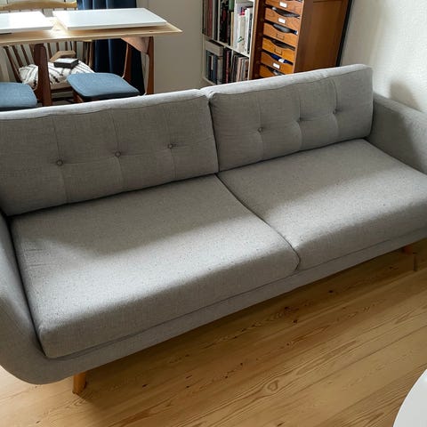 Sælger min Kragelund sofa i mørkgråt betræk og mørkbejdset egetræsstel. Sofaen er generelt i god stand, men har let brugsspor efter almindelig daglig brug. Betrækkene på både puder og hynder kan tages af, hvilket gør rengøring nem.