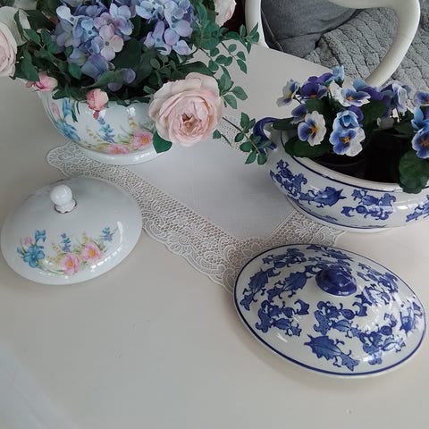 Ukendt porcelænsskål hvid med blå blomstermotiv