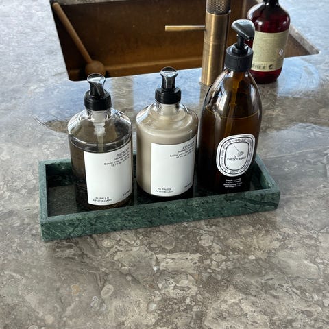 Dixie Marble bakke i marmor. Rektangulær bakke i naturmarmor, egnet til opbevaring af f.eks. sæbedispensere, badeværelsesartikler eller småting i køkken og entré. Den massive marmor giver en stabil og tung overflade, som er let at tørre af. Neutralt design, der passer ind i mange typer indretning.