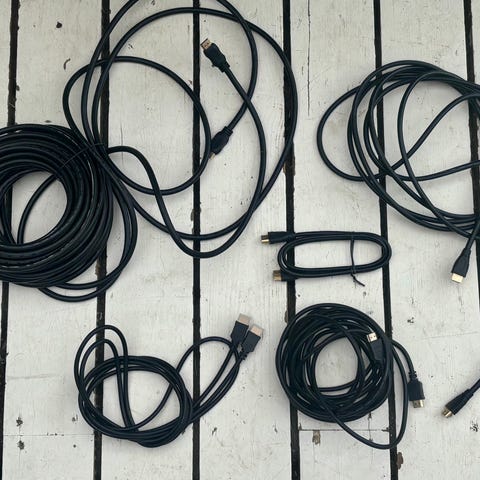 Stor stak helt nye kabler. Der er over 40 styk samlet og en blanding af