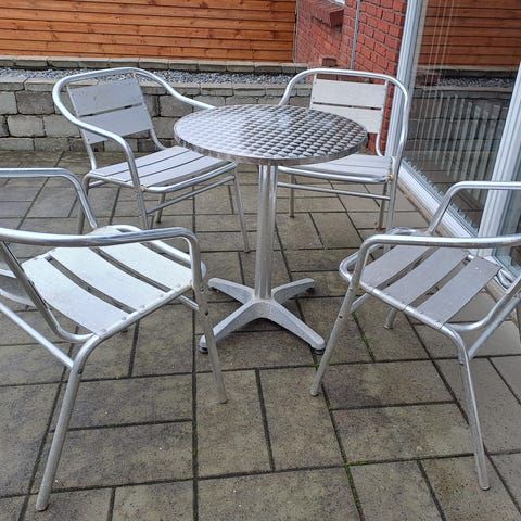 Sort terrassebord i komposittræ med aluminiumsstel.