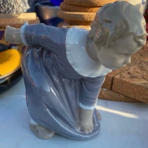 Bing & Grøndahl figur i porcelæn, model nr. 1795. Figuren forestiller en pige, der leger med en kat. Klassisk B&G glasur i blå og hvide nuancer. Undersiden er mærket med Bing & Grøndahl Copenhagen Denmark stempel samt modelnummer. Velegnet som dekorationsfigur i hjemmet eller til samling af porcelænsfigurer fra Bing & Grøndahl.