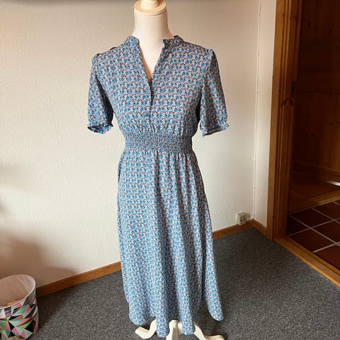 Stilfuld gråblå kjole str 40/L hverdag ell. fest lidt shine i stoffet -ny/ubrugt