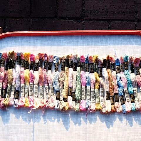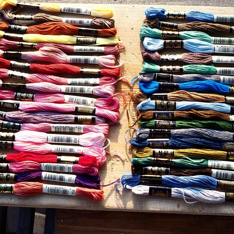 38 dukker DMC25 bomulds broderigarn, stærke farver, i alt 77 gram. Sender gerne, med DAO