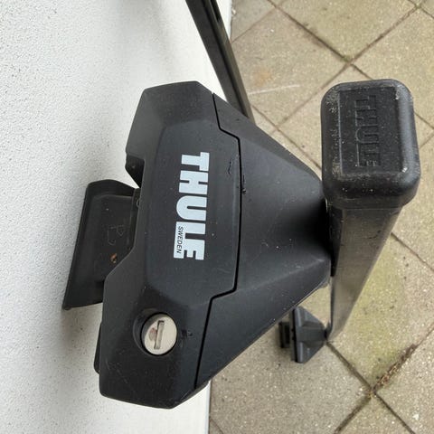 Thule 125cm tagbøjler i sort. Sættet består af to tværstænger med fødder og lås+nøgle til alle. Tagbøjlerne er velegnede til montering på bilens tag til transport af f.eks. tagboks, cykelholder eller andet taglasttilbehør.