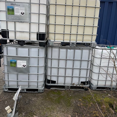 IBC tank plast beholder med en kapacitet på 1000 liter. Beholderen er omgivet af metalgitter og har aftapningsventil i bunden. Velegnet til opbevaring og transport af væsker, f.eks. vand eller andre kompatible væsker, afhængigt af tidligere indhold og rengøring. Beholderen står på pallebund, som gør den nem at håndtere med truck eller palleløfter.