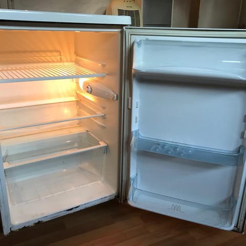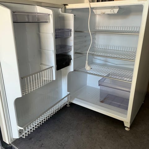 Bauknecht køleskab til afhentning på Østerbro. Det virker som det skal, men den ene låge i den ene fryserskuffe falder indimellem af.