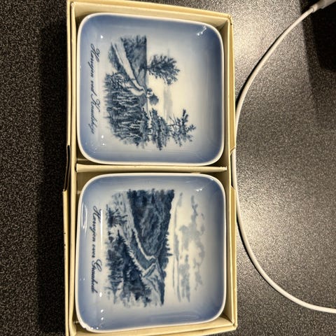 Royal Copenhagen askebære i hvid porcelæn. med guldfarvet kant indvendigt. Fra 1960 erne.