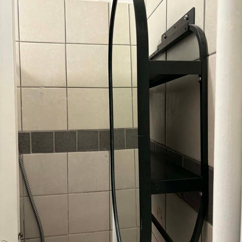 Sort spejl med lille hylde, som passer perfekt til fx entre.