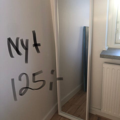 Spejlet er ca 50×70 cm inkl. hylde.