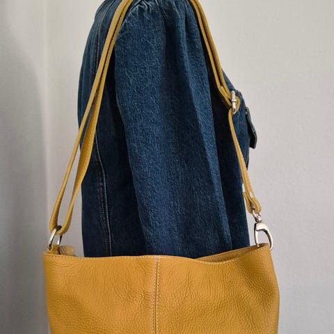 Billede nr. 2, 3 og 4 viser tasken åben. På billede 3 og 4 ses den ubetydelige krakelering i venstre side.