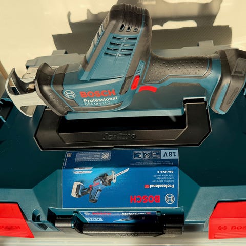 Bosch sabersav i grøn plast og gummi med sort greb og røde betjeningsknapper. Saven leveres med batteri og tilhørende Bosch lader, som tilsluttes med ledning til stikkontakt. Velegnet til grovskæring og beskæring af træ og andre egnede materialer i have og hus. Designet med lukket håndtag for bedre kontrol under arbejdet.