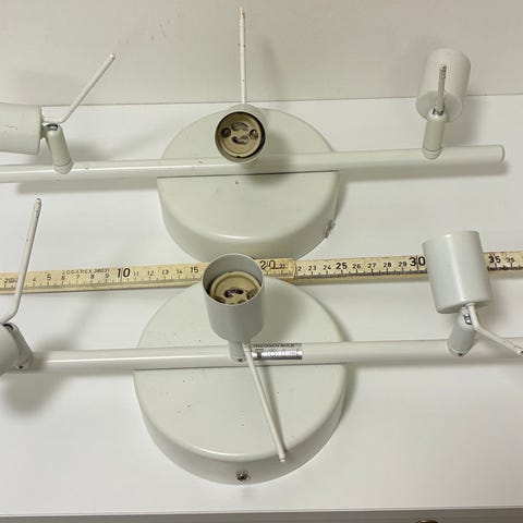 Sælger disse to spotlights. De kan vippes til 90 grader og kan derfor hænges i loftet eller på væggen.