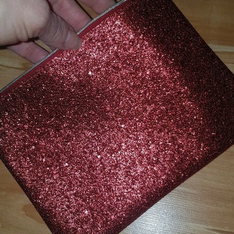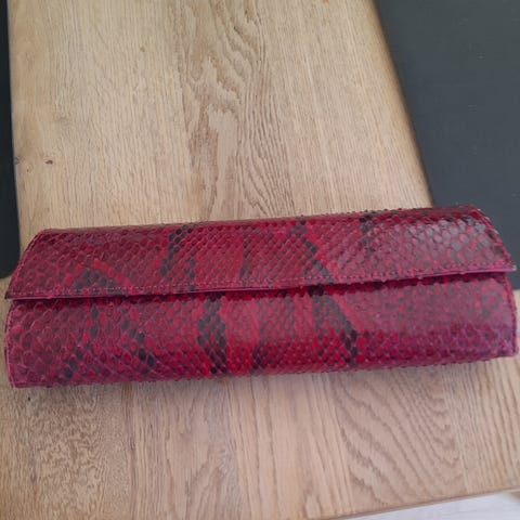 Jeg har til salg en flot bordeauxfarvet håndtaske uden rem i mærket Oriflame. Den har det helt rigtige format til selskabsbrug, da en er lille og elegang. Den er i farven Bordeaux i et materiale, som føles som blødt silkestof med mørk glans. Tasken har et stort rum og en lille lomme til f.eks. kreditkort. Låsen er en magnetlås. Tasken er fuldstændig som ny og aldrig brugt.