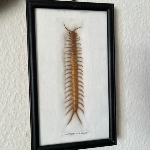 Udstoppet fugleedderkop i træramme. Fin stand.
