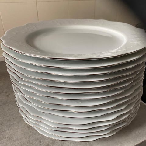 IKEA tallerkener sæt i råhvid. Sættet består af ensfarvede, runde tallerkener i enkel, glat udførelse. Egnet til daglig brug i køkken og spisestue, f.eks. som