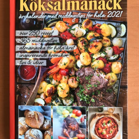 Almanak kogebog med opskrifter og inspiration opdelt efter årets måneder. Bogen indeholder månedskapitler fra januar til december samt register. Illustrationer og fotos viser råvarer, retter og serveringsforslag med fokus på sæsonens grøntsager og råvarer. Egnet som opslagsbog i køkkenet til planlægning af måltider gennem hele året.