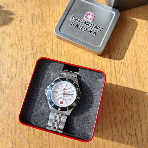 Ikke brugt meget med org stål rem og udstyret med en Victorinox gummi rem den er bare lækker,ø41.