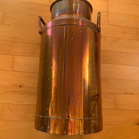 Flot kobber spand, med porcelænshåndtag