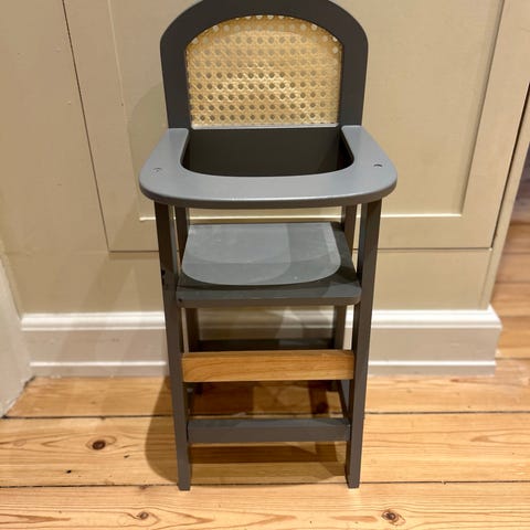 En lille miniature stol i metal. Ved ikke om det er kobber eller måske messing. Dukkehus størrelse. 20kr. Ishøj.
