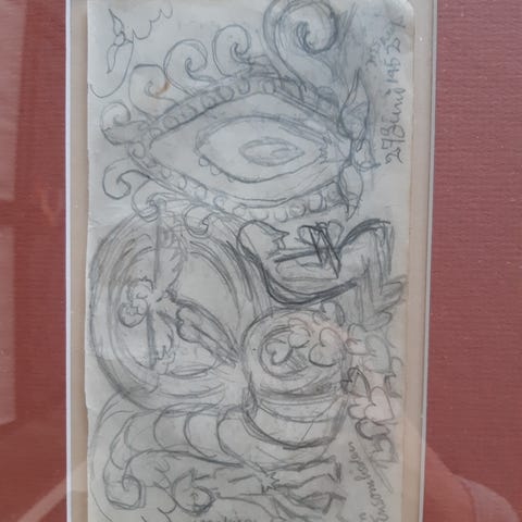 Originaltegning af Henry Heerup og hans forlæg til litografiet Leda og Svanen. Rammemål: 22x22cm.