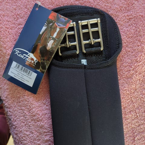 Kentaur dressurgjord Salerno i sort læder. Gjord med anatomisk form og blød polstring. Udstyret med rustfri rullespænder i begge ender samt D-ring i midten til fastgørelse af hjælpetøj. Velegnet til dressursadler og daglig ridning.