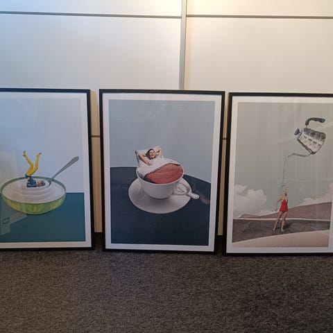 2 moderne plakater i ramme – grøn & blå gradient – 200 kr/stk