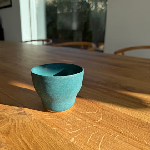 Koppen har en enkel, rund form uden hank og en glat, mat overflade.
