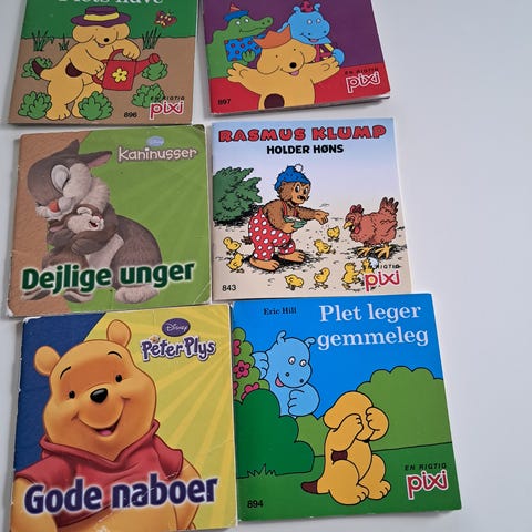 24 pixi-bøger med alt fra Peter pedal, brandmand Sam, plet og Rasmus klump