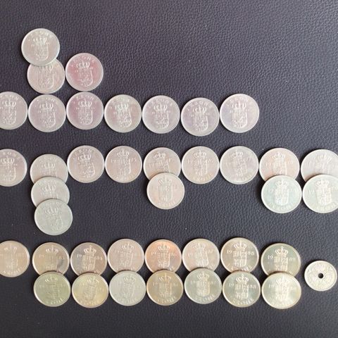 23 stk 1 kr (25,26,31,39,40,41,42,45,46,begge modeller 47,48,49,52,53,55,56,57,58