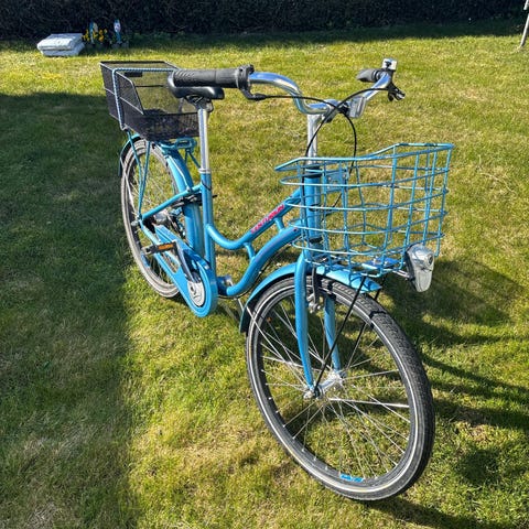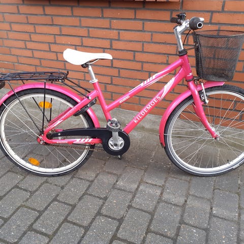 Lilla pigecykel, som har passet i størrelsen fra 6-9 år. 24 tommer hjul og 7 gear. Generelt i fin stand, men kurven har skrammer.