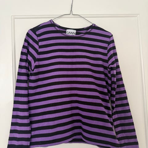Tshirt fra Ganni str M. Brugt 1 gang. Desværre for lille. Kan sendes for købers regning.