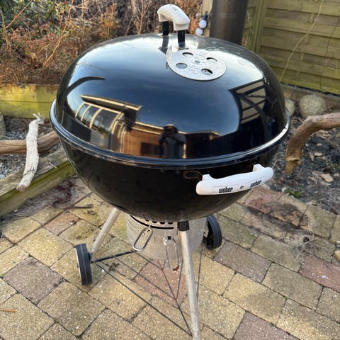 Weber kuglegrill til kul i sort. Klassisk rund kugleform med låg og ventilationsspjæld i toppen. Grillen har låg- og sidehåndtag i plast samt understel med ben og hjul for nem flytning. Grillrist i metal med kulrist nederst. Velegnet til udendørs madlavning i have, gård eller på terrasse.